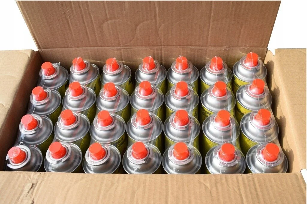 28 vnt. dujų balionėlių Alpen Camping (400 ml), supakuotų į patogią dėžę