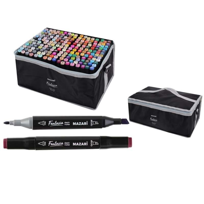 Dvipusių markerių rinkinys 204 spalvų su dėklu